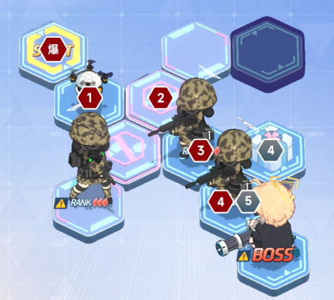 3、5回合内完成关卡。