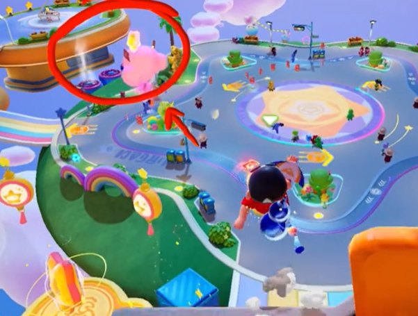 1、首先前往到元梦岛中的【拱形桥】中间拾取到滑翔伞;