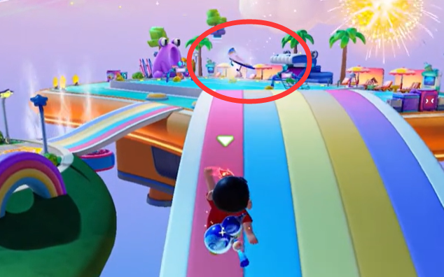 3、到达下图的位置飞行跳到降落到红包雨上;