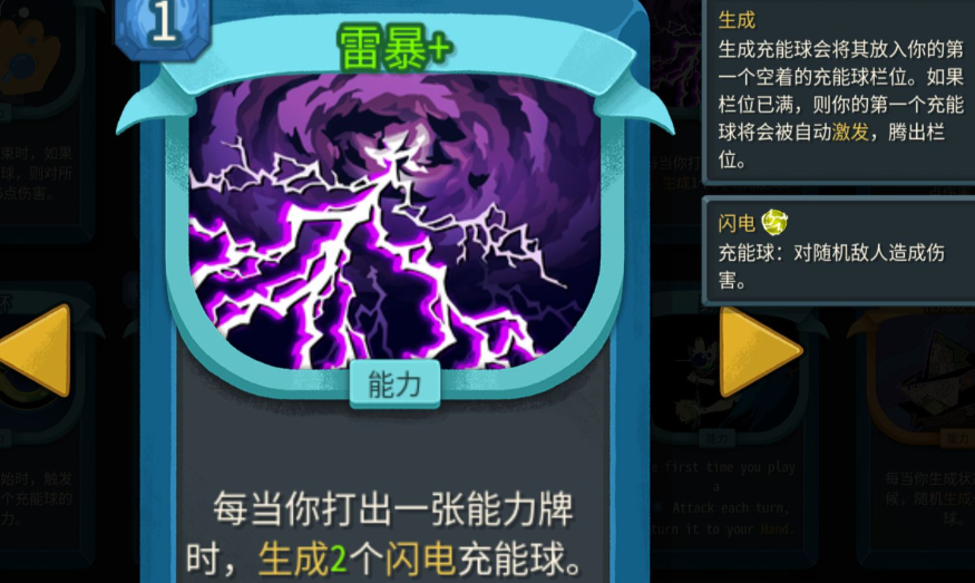效果:每当你打出 1 张能力牌时,生成 2 个闪电充能球