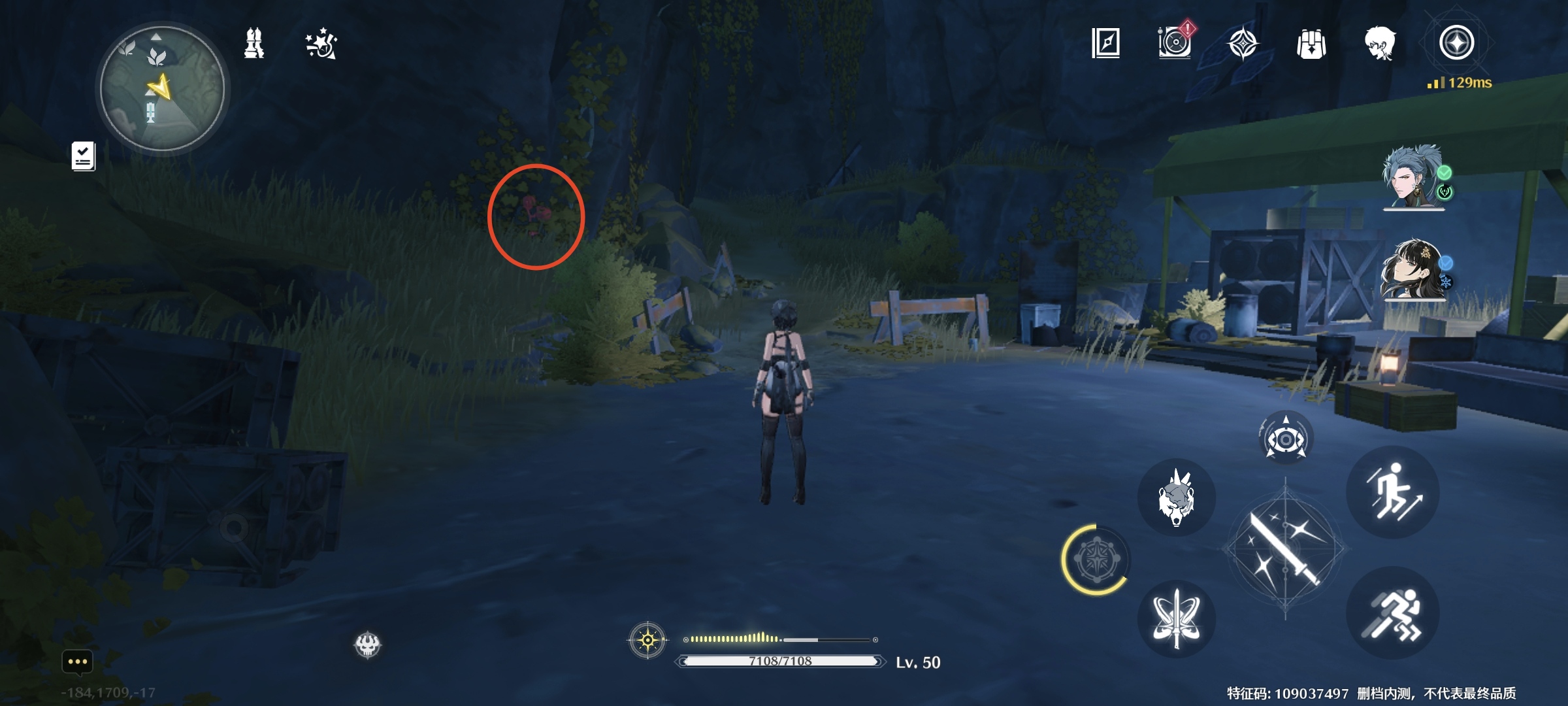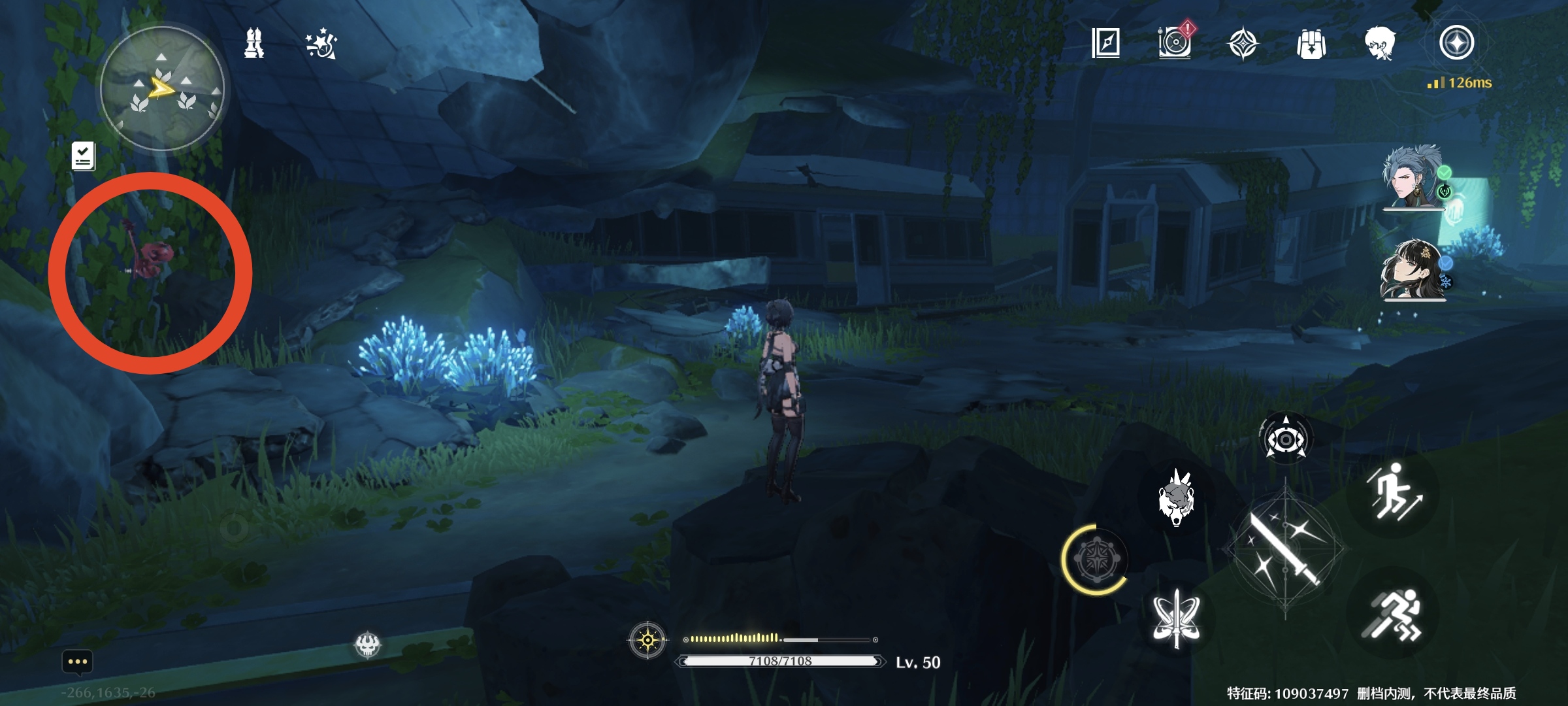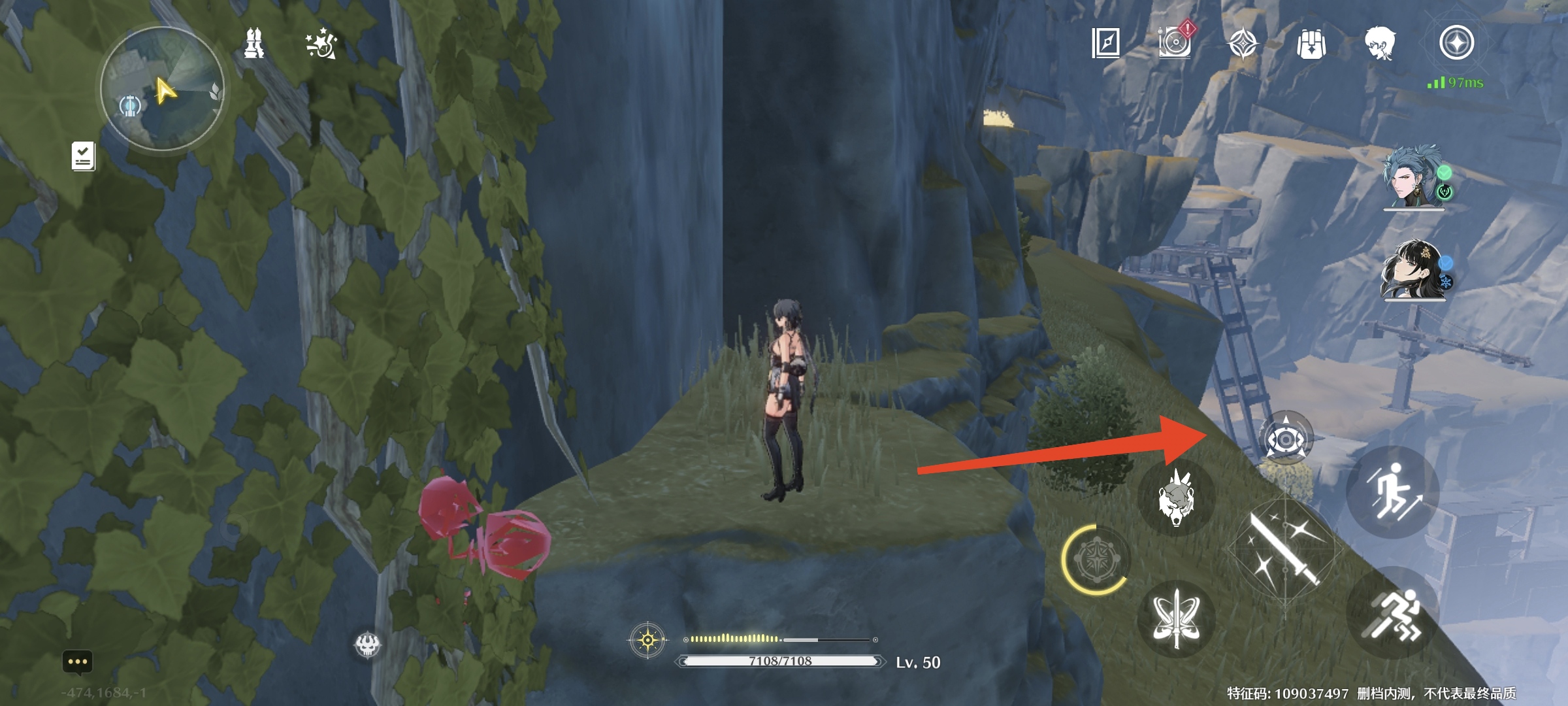 继续往里走,出来到一个瀑布旁,看到右手边西方向(小地图左边),路边有1个
