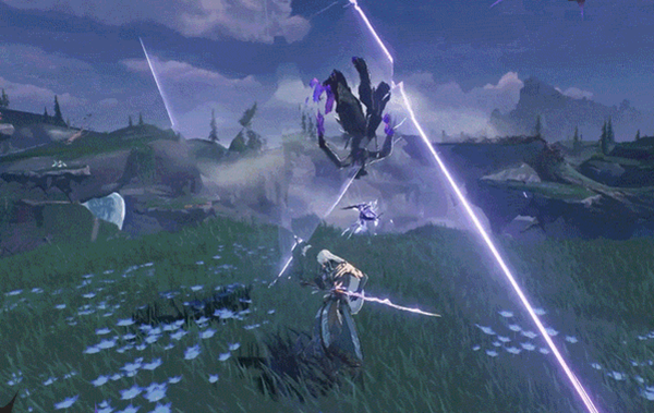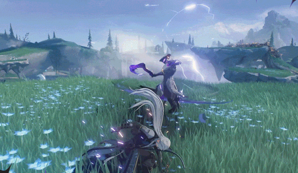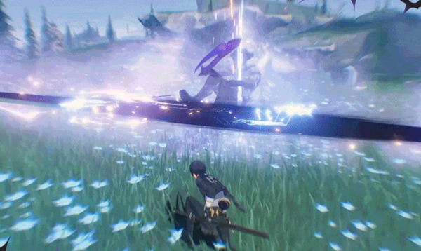 协奏能量充满时卡卡罗退场,猎杀影入场支援角色,造成导电伤害。