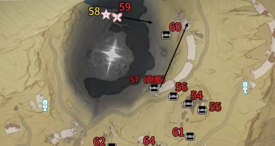 5、荒石高地51-66,其中三个声匣,具体的物资箱等收集点位如下。