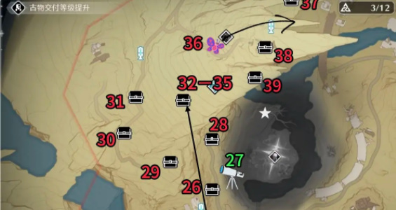 3、荒石高地25-39,其中一个风景点,具体的物资箱等收集点位如下。