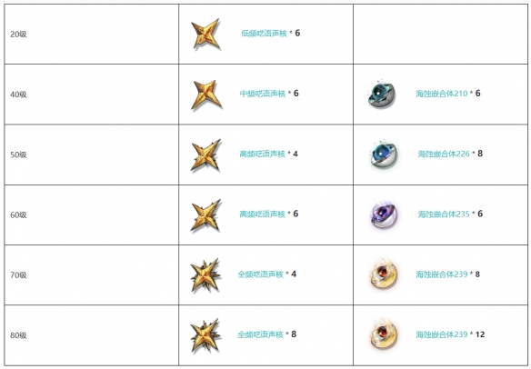 初始 / 20 / 40 / 50 / 60 / 70 / 80 / 90级: