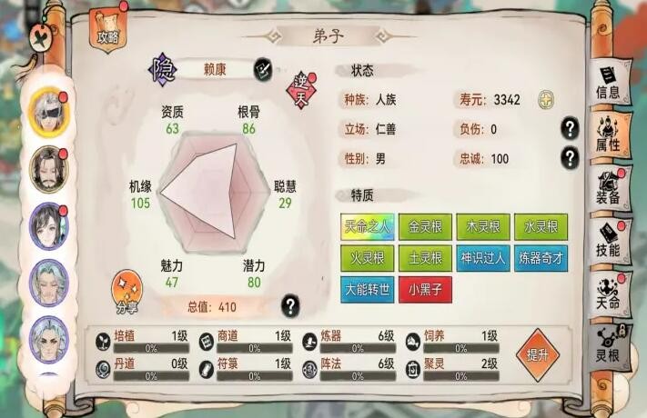 隐修:1弟子橙色红色品质五灵根/2弟子品质橙色以下,五灵根+不灭之体/不死之躯/药 灵圣体/自愈之体