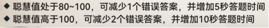 (6)参加文斗擂台活动时,如果参与弟子的聪慧达到80、100时,可以直接排除1、2个错误答案。所以我们同样可以把参与弟子设置成掌门或戒律长老,尝试利用+5点聪慧达到排除答案的要求。