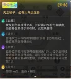 特殊天命反伤加放前排减伤。是前中期最强坦克,在后期四阶装备时候需搭配反伤套加本命法宝反伤镜子达到能被敌人主力输出打中时直接反杀对面!技能搭配火复活魂归燃灵等自由搭配。