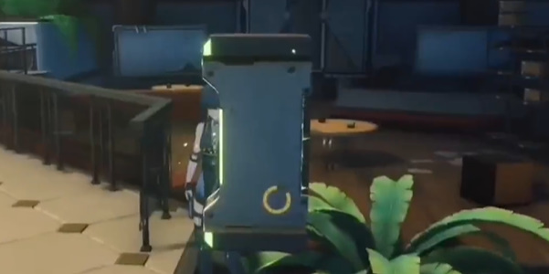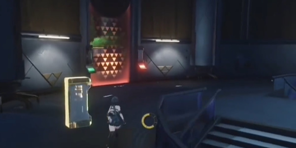 1、首先玩家跟随任务解锁【寻找能为实验室通电的方法】时会来到下图位置,前往二楼将绿色电池放进去。