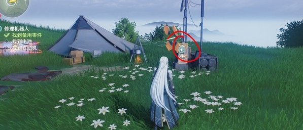 1、接取任务之后,先在帐篷边上和金色光点进行交互;