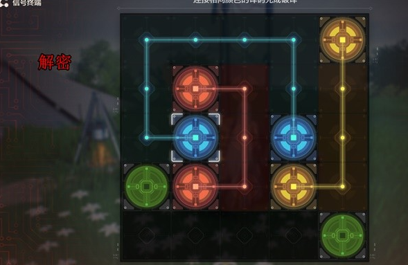 4、这里是需要解谜的解密,其实就是连接相同的颜色,如下图: