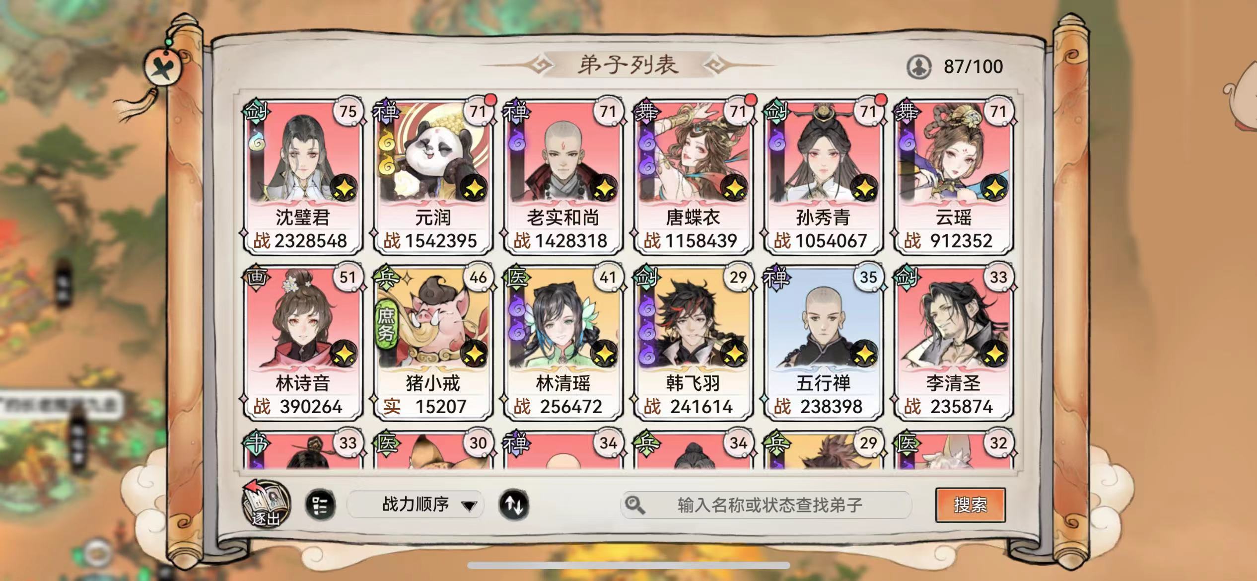 这样你的弟子阵容:输出:红女剑,主t:元润,副:杨安,辅助:唐蝶衣+随便捡一个,没有好的就白子灵(因为他免死一次)。