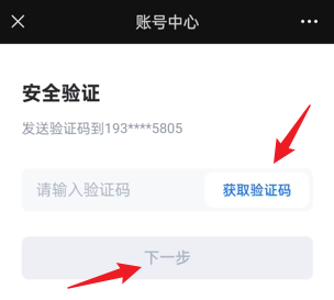 7、最后获取当前绑定手机号的验证码后,点击下一步即可换绑。