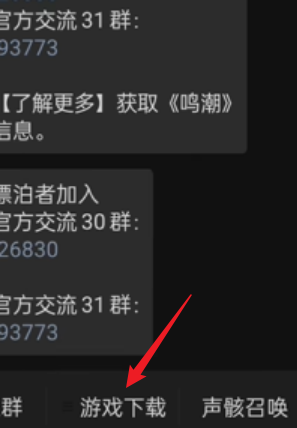 2、进入聊天界面后点击中间的游戏下载。