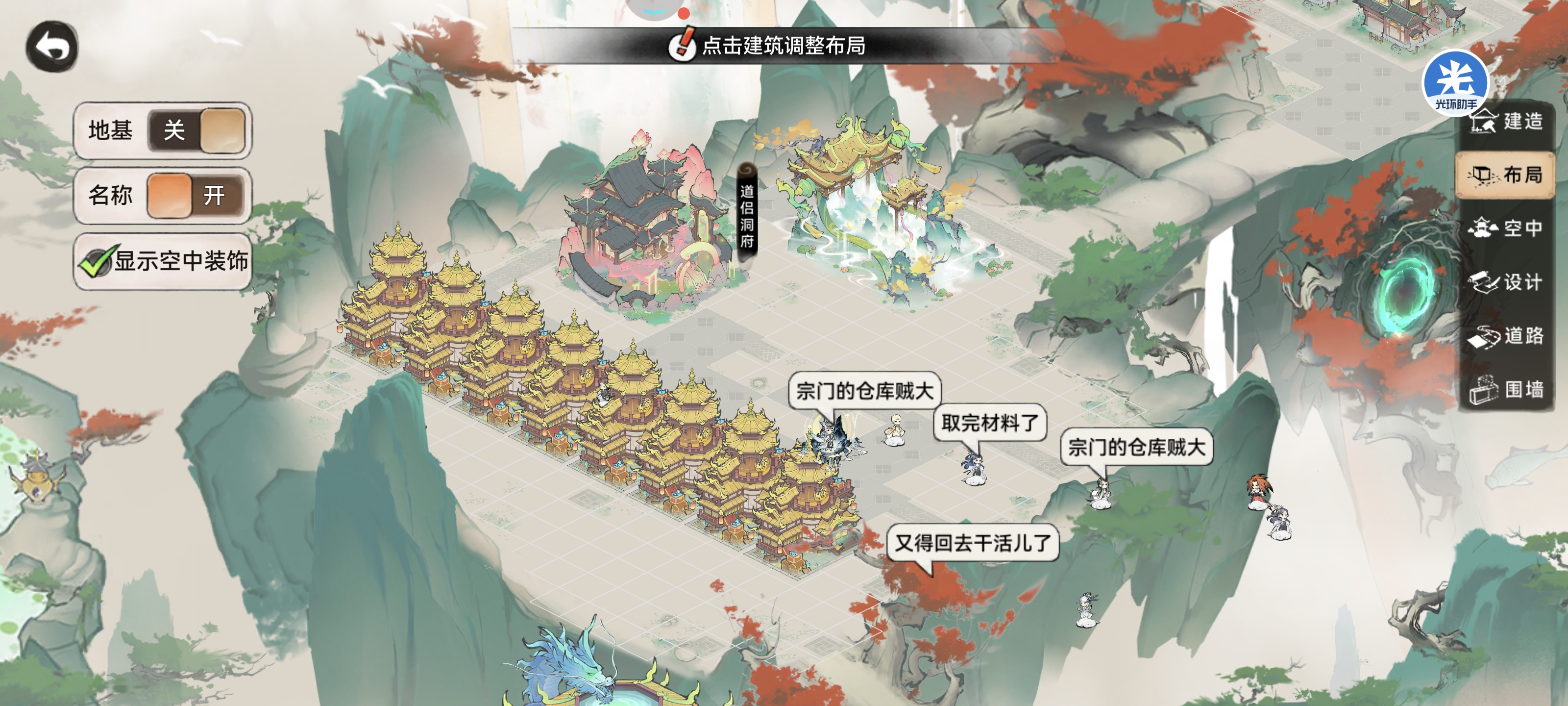 细节:①宗门大殿旁边放高等级独居,方便弟子养成;