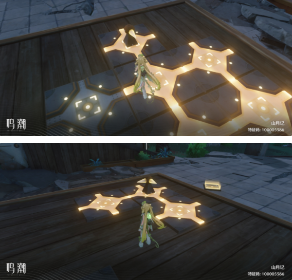 1、玩家到达下图这个位置后,跟楼梯左侧的道具互动即可开始解谜;