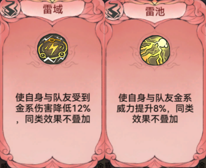 即金、水伤害减免、天雷被动技能等级加成、煞刑被动技能等级加成、天一主动技能伤害加成、天一主动技能等级加成;变异密藏选择雷池或雷域都可以。