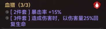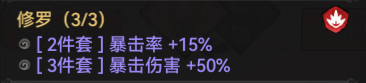 首先,【修罗】套可以在提供大量暴击率的同时,提供不俗的暴击伤害加成。这是选择修罗套的原因,那为什么不选择【血猎】三件套呢?