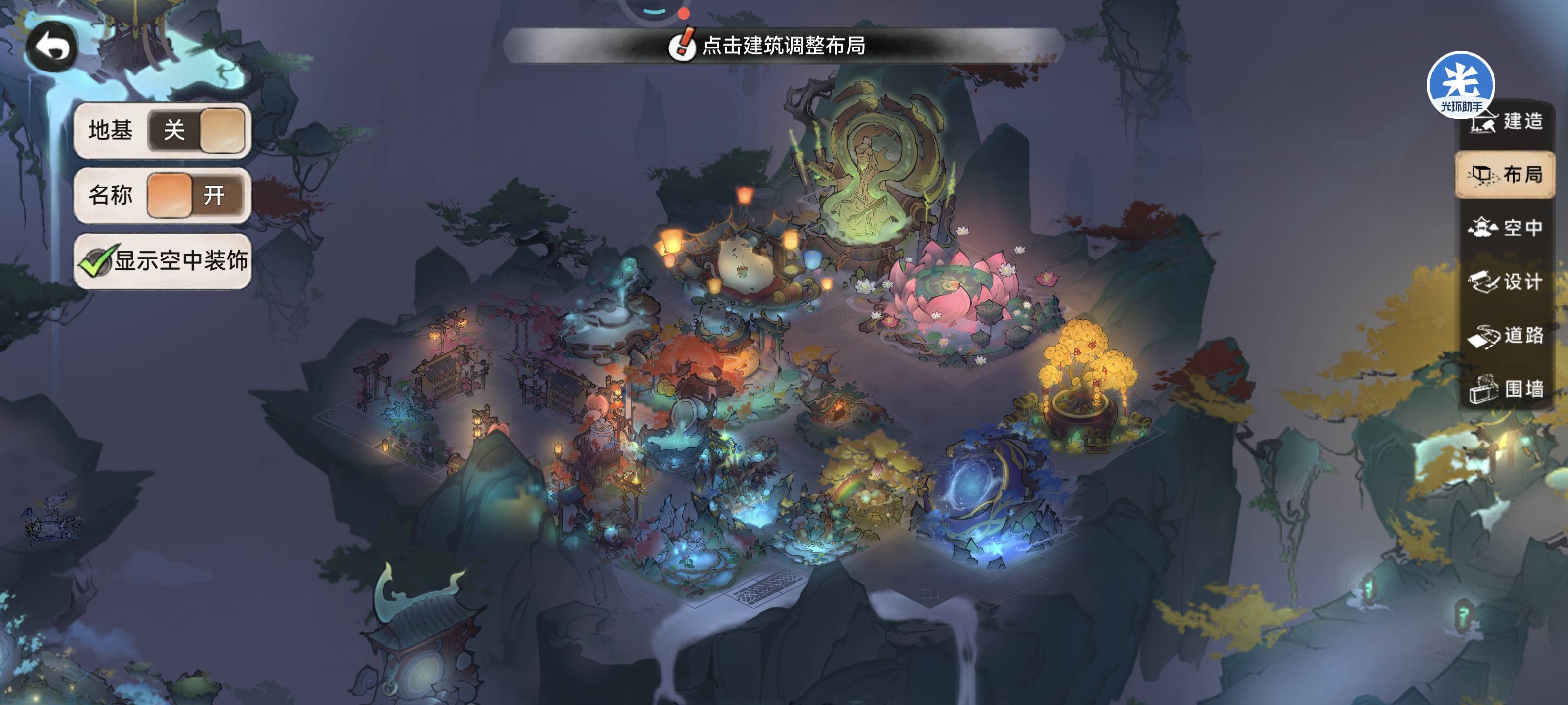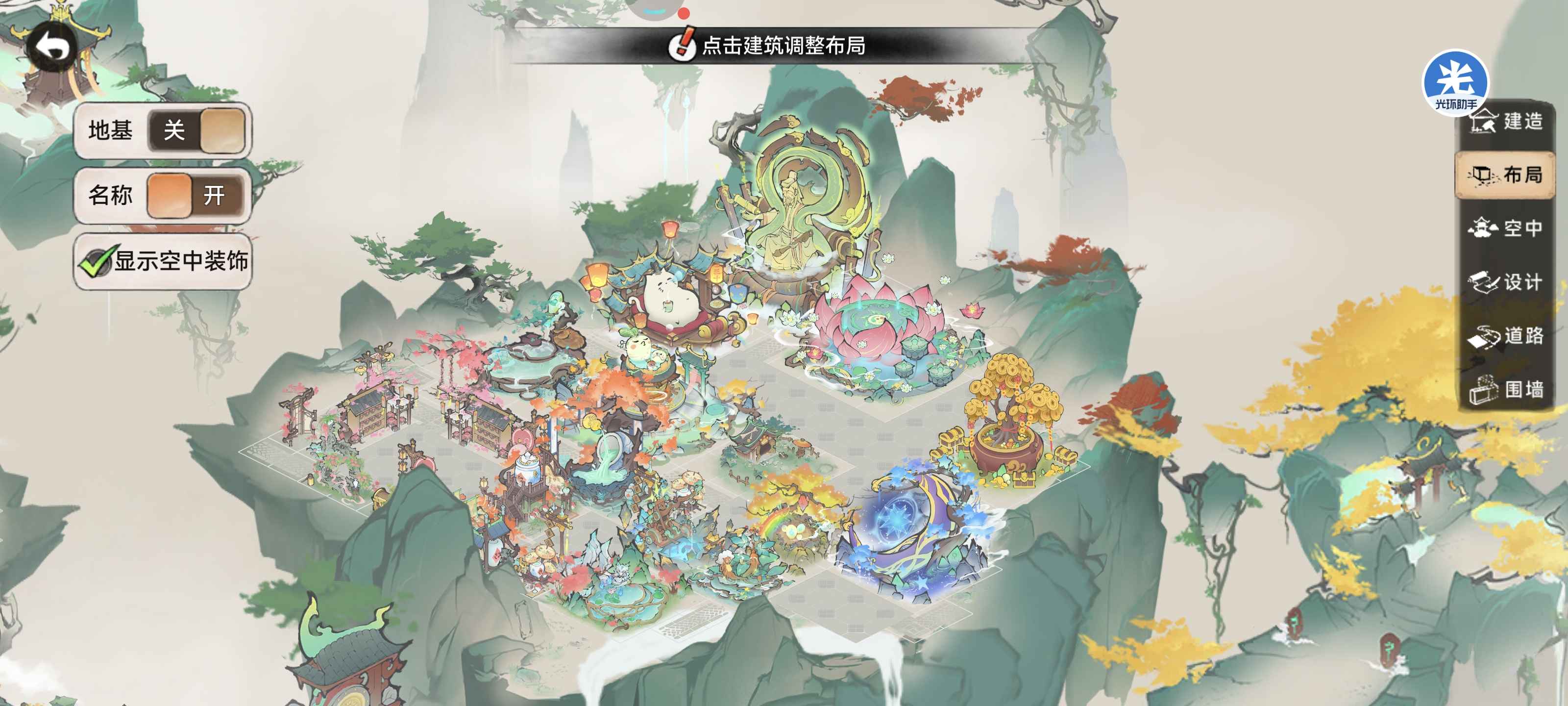 ③布局考虑建筑风格及使用频率,如藏金阁等放边上,引仙台等放中间,方便清日常;