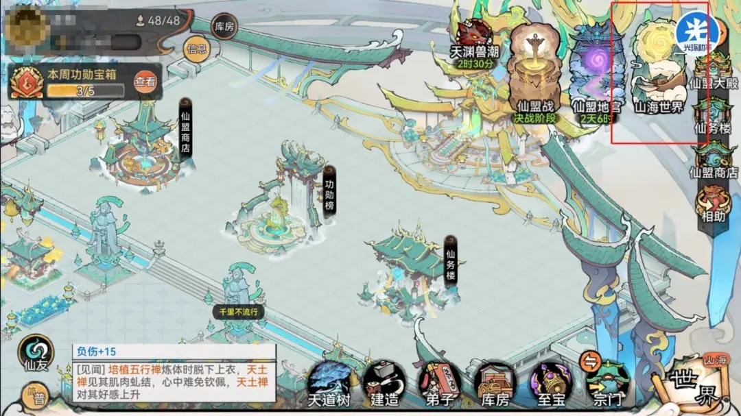1、开启条件:宗门等级达到25级,且所在区服开服40天以上,可以通过仙盟右上角图标或者世界地图的右上角进入山海世界。