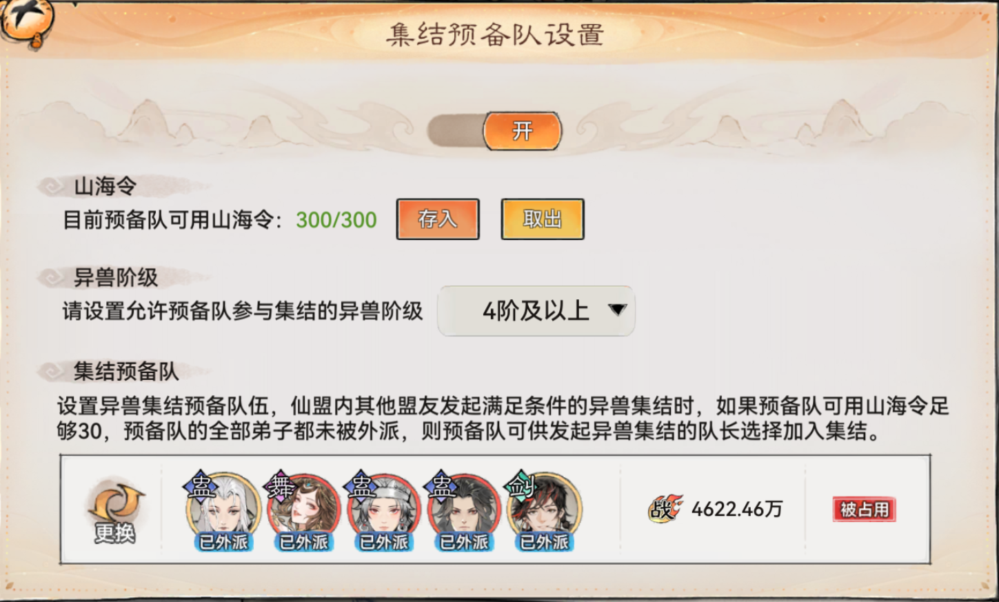 2、解锁条件:3级及以上的异兽需要通过研究仙盟谋略中的“山海巡猎”技能来解锁。