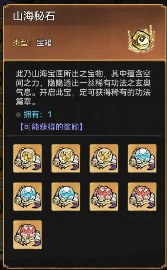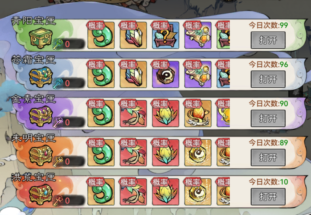 3、山海宝匣:魂钥用于开启山海宝匣,可以获得大量灵玉、灵根变异、淬体材料、山海秘石等稀有物资。前四级宝匣每天开启上限99次,五级宝匣每天开启上限10次,开启次数于凌晨5点重置。