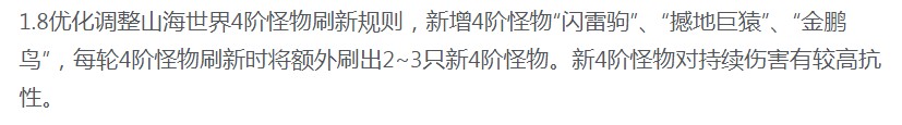 3、异兽刷新时间:5阶异兽每天10点刷新1只;4阶异兽每天0点、4点、8点、12点、16点、20点刷新,每波10-13只。