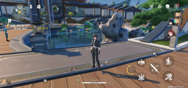 2、到达之后往这个水池走,在这里和npc【士远】对话,就可以开始成就任务;