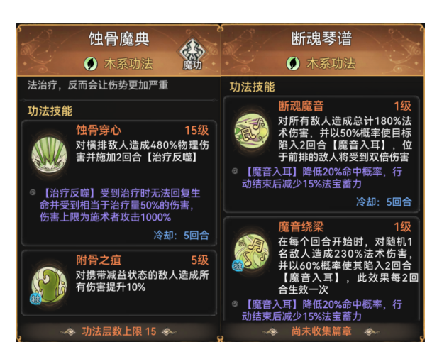 前期比较好用的回血功法,但无奈当前版本顺带回血、忽略抗性的功法太多,只能黯然委居二线。