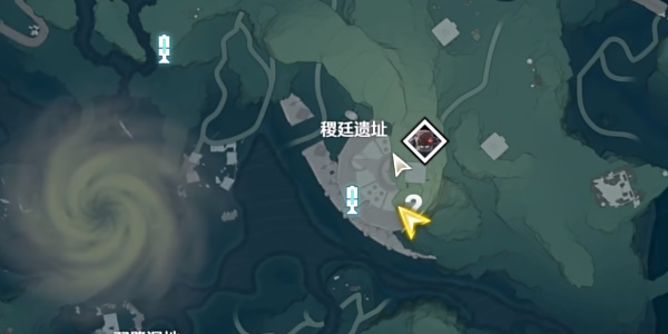 5、最后玩家传送到稷廷遗址附近的信标,然后往图中标记的信标位置移动,来到山顶上调查最后一处光亮找到第三个宝藏即可完成任务。