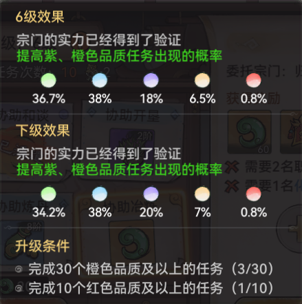 在收集资料时,发现有的小伙伴疑惑:为什么我明明完成了橙色品质的任务,但是升级条件那里却没有增加对应的次数?其实,有一种可能,是你看错了任务的品质!悬赏台任务的品质,是要观察其边框的颜色,而不是其给的奖励的颜色!