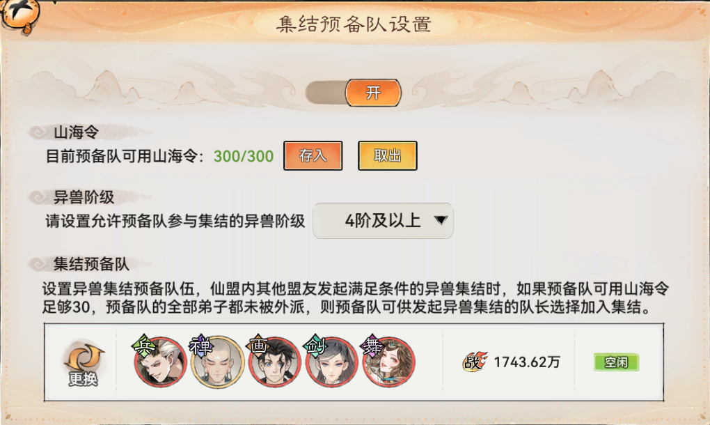 预备队正常设置并存入体力之后,每当盟友发起对异兽的征讨时,都可以拉我们上车讨伐异兽,正常获得讨伐收益;同样,在你发起征讨时,也可以拉预备队体力充足的盟友上车。