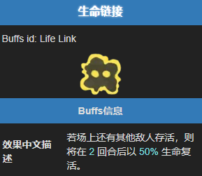关于状态效果的具体描述,中文显示为:若场上还有其他敌人存活,则将在 2 回合后以 50% 生命复活。英文描述则为:If other enemies are still alive, revives in 2 turns at 50% HP。这一机制要求玩家在输出时必须兼顾全场敌人的血量状况。