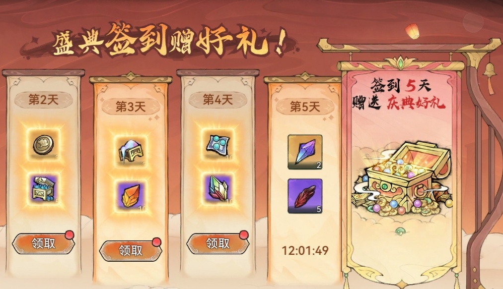 活动期间,祖师完成签到任务即可获得许愿币、星尘石英等奖励。
