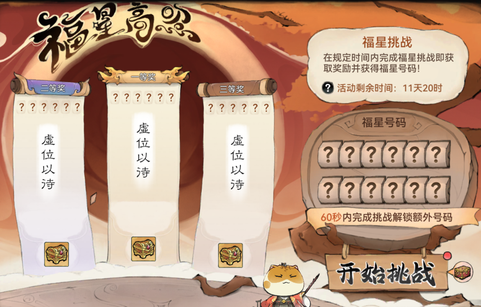 活动期间,祖师每天晚上20点前可参与小游戏挑战,获取专属福星号码来参与福星抽奖。