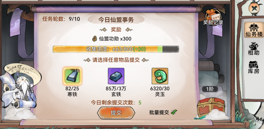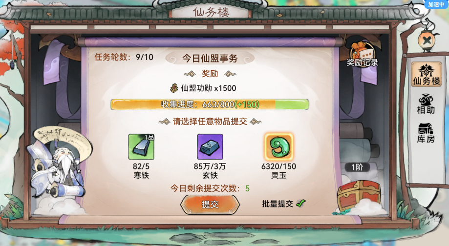 首先,我们来看看每日的日常之一——仙务楼提交物资。