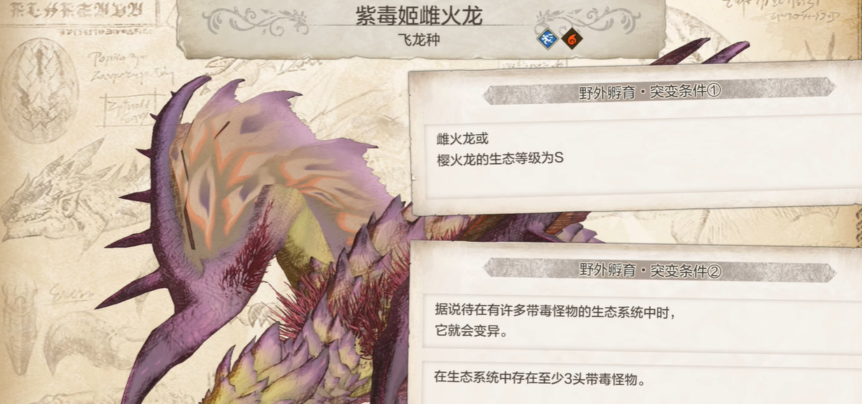 解锁紫毒姬雌火龙并非难事,关键在于耐心培养生态等级与合理搭配怪物阵容。只要将雌火龙或樱火龙的生态等级提升至 S 级,并在同一生态系统中凑齐三种毒属性怪物,即可触发解锁条件。这只变异怪物作为前期强力战力,能显著提升队伍的输出能力与多样性。