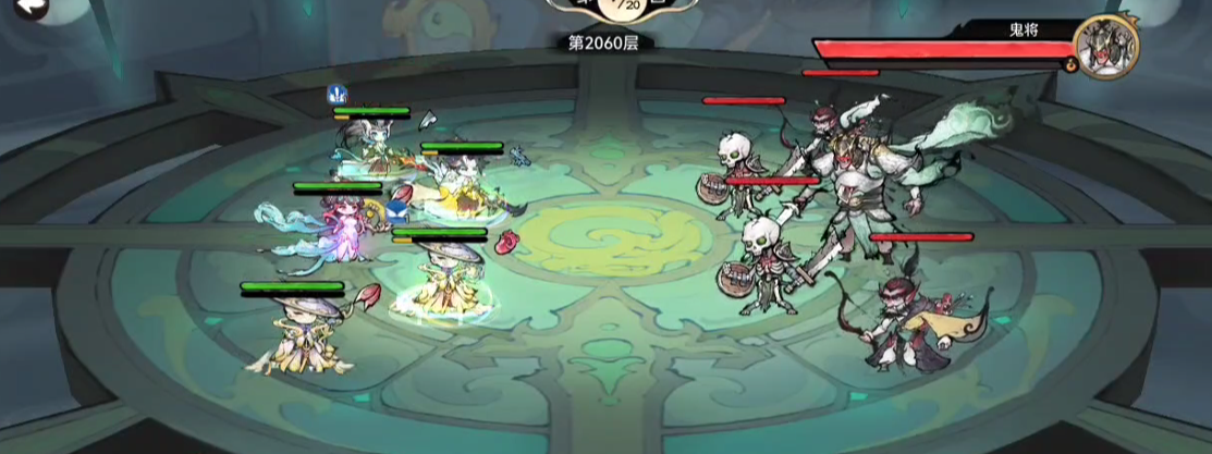 还有一个办法,鬼将的锁血一整局就一次,所以如果我们可以尽早把鬼将的锁血打出来,也是可以有效提高通关率的,一般最好的时机就是在第一次清理掉四个小怪和鬼将第一次复活小怪之间的回合!