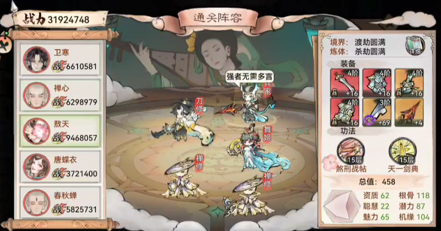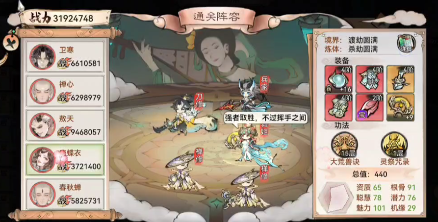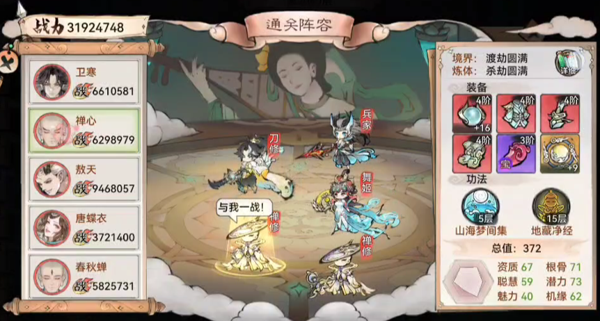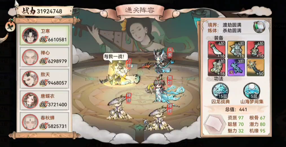 2、输出节奏:于前文所述,可以选择让龙人先压低小怪血量,随后让携带“禁止复活”类功法的卫寒来收割,同时,尽可能在战斗前期就把鬼将的锁血打出来!把握好这两点,通关的概率就很高啦(祝大家不要永远不要和帖主一样,想向天再借三回合!);