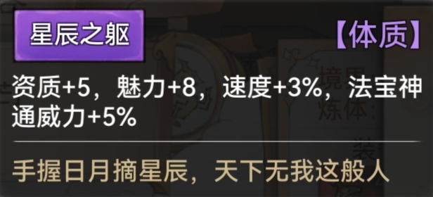 星辰之躯:速度+3% 法宝威力+5%
