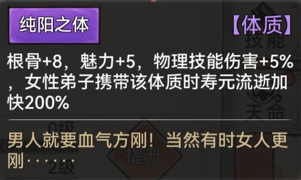 纯阳之体:物理技能伤害+5%