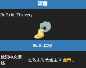 类型:敌方 BUFF,该状态可叠加。拥有盗窃状态的敌人,每次发动攻击时,会偷走玩家 X 点金币。金币是游戏中的重要资源,用于商店购买卡牌、遗物和删除卡牌。该状态可叠加,层数越高,每次攻击偷走的金币越多。