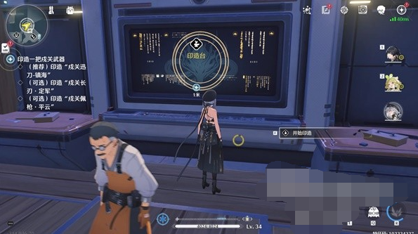 6、与老板身后的印制机互动,选择自己所需的一种武器类型印制,继续与老板对话进入下一步;