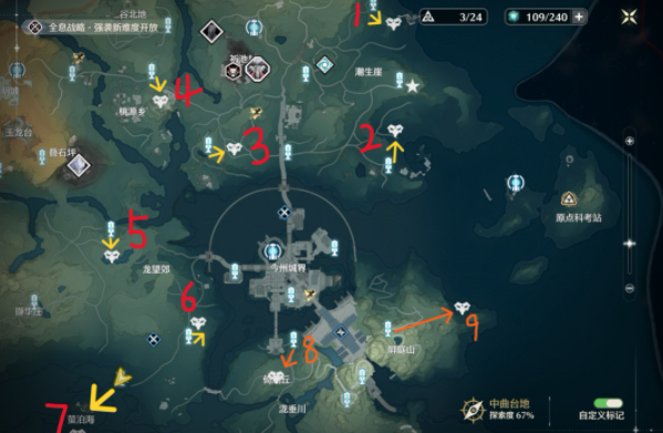 鸣潮游戏中有很多飞猎手,其中“中曲台地/今州城”区域中一共有九个飞猎手,点位比较接近,是可以一起收集的,下面是小编给大家带来的《鸣潮》中曲台地/今州城飞猎手位置一览,感兴趣的小伙伴们一起来看看吧。