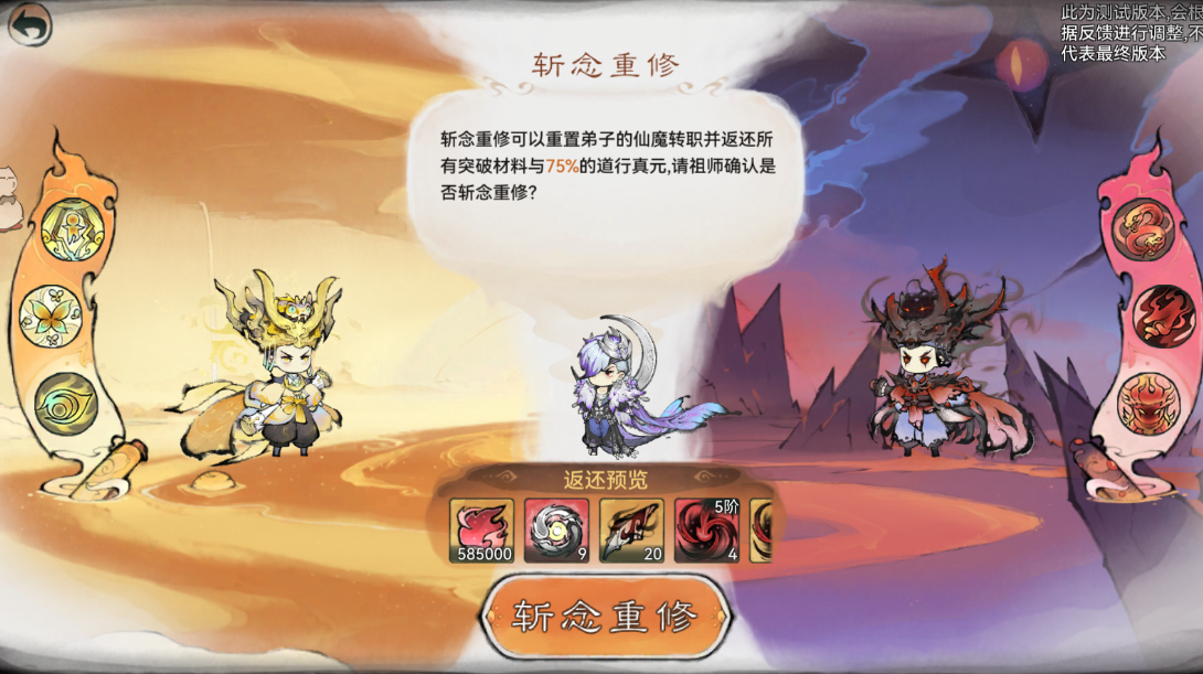 损失一定的升级资源来重选仙魔(类似灵根的重置);