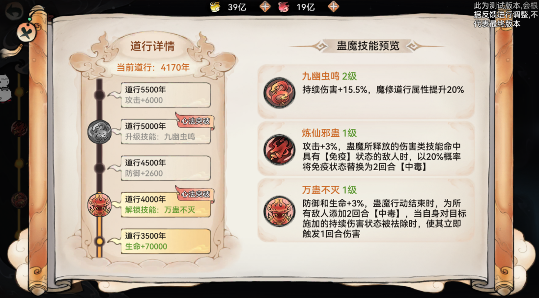 成功转职后,会跳转到道行修炼界面,道行会随时间的增加而自然增长(贼慢),
