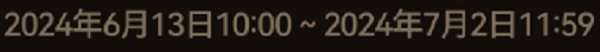 2024年6月13日10:00~2024年7月2日11:59(服务器时间)。