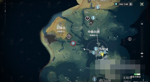 5、第二次对话结束前方今州城靠左的画圈位置。