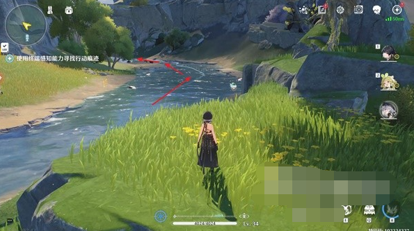 6、先与目的地的炼风对话,随后使用感知道具看到河流正在指引我们,先跟着指引走。