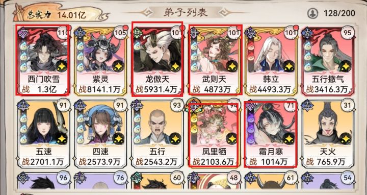 后续:先补阿狸、卫寒、唐蝶衣到仙三,再考虑新弟子。1.4万年左右自选拉霜月寒到红1后停手,1.5万年后资源重点转向灵阵、古宝等战力系统。